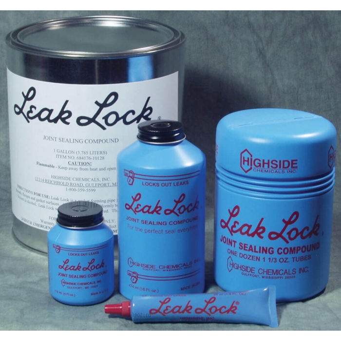 Highside Leak Lock is a state-of-the-art high strength, pipe joint sealant consisting of chemically-resistant film formers, plasticizers, reinforcing fillers and solvents, useable on all clean metal or plastic surfaces.