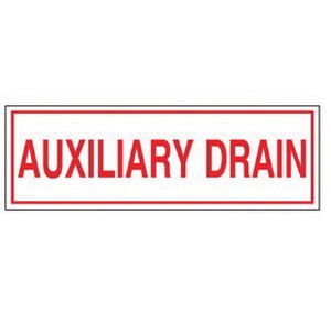 White on Red Powder Coated 21 ga Aluminum Auxiliary Drain Sign, 6 in L x 2 in W