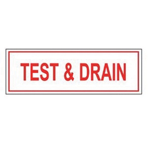 White on Red Powder Coated 21 ga Aluminum Test and Drain Sign, 6 in L x 2 in W