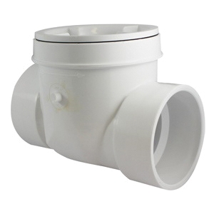 - Installed in a PVC white DWV piping drainage system to provide waste water backflow protection to fixtures and floor drains, below the flood plane