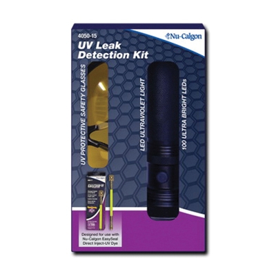- Quickly find larger leaks with Nu-Calgon's powerful UV-flashlight and fluorescence enhancing glasses kit