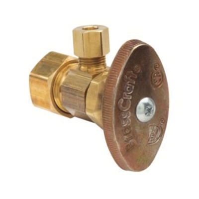 BrassCraft 1/2 in nominal compression inlet x 1/4 in OD compression outlet multi-turn angle valve controls water flow to household plumbing fixtures - faucets, toilets, dishwashers, icemakers, washing machines, etc. The angle valve is most often used where the water pipe enters the room from the wall. With a few turns of the valve handle, you are able to stop the flow of water leading to the plumbing fixture, allowing for maintenance and repair without turning off water to the entire home.