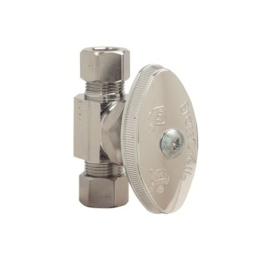 BrassCraft 1/4 in nominal compression inlet x 3/8 in OD compression outlet multi-turn straight valve controls water flow to household plumbing fixtures - faucets, toilets, dishwashers, icemakers, washing machines, etc. The straight valve is most often used where the water pipe enters the room from the floor. With a few turns of the valve handle, you are able to stop the flow of water leading to the plumbing fixture, allowing for maintenance and repair without turning off water to the entire home.
