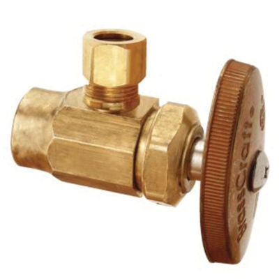 BrassCraft 1/2 in nominal sweat inlet x 3/8 in OD compression outlet multi-turn angle valve controls water flow to household plumbing fixtures - faucets, toilets, dishwashers, icemakers, washing machines, etc. The angle valve is most often used where the water pipe enters the room from the wall. With a few turns of the valve handle, you are able to stop the flow of water leading to the plumbing fixture, allowing for maintenance and repair without turning off water to the entire home.