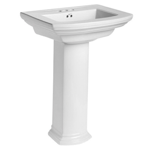 Barrett 328 Vitreous China 3-Hole Single-Bowl Rectangular Pedestal Lavatory Sink, 24-3/8 in L x 19-1/8 in W x 8-5/16 in H, Rear Drain, White