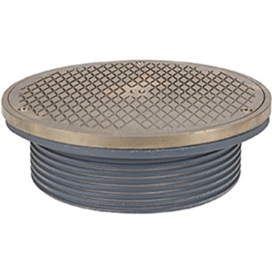 Sioux Chief 834 series FinishLine adjustable on-grade cleanout shall be used where necessary in drainage systems. Cleanout shall allow adjustment before and after the concrete pour. Scoriated cleanout cover shall meet applicable load requirements for intended use. Cleanout shall include a slotted, polypropylene or brass cleanout plug, situated in base adapter.