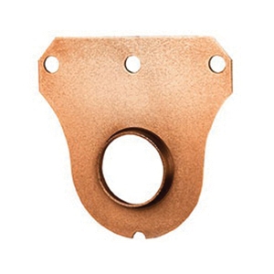 Sioux Chief 505 series copper eared tube strap shall be used where necessary to support copper CTS in piping systems. Strap can be fastened directly to studs or joists or secured to either copper-plated or galvanized-plated brackets when position of the tube falls within the stud or joist cavity. Pre-drilled, 1/8 in diameter mounting holes are provided and designed to align with most conventional support brackets. Strap is to be made of 17 ga copper-plated steel. Strap can also be staked onto preformed copper fittings such as Sioux Chief's stub out elbow #630X246E or can be used as a bottom plate to secure vertical risers.