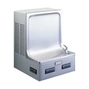 Wall-mount water cooler with 1-piece stainless steel basin with backsplash. Easy-to-operate front and side push bars with raised letters to assist the visually impaired.
