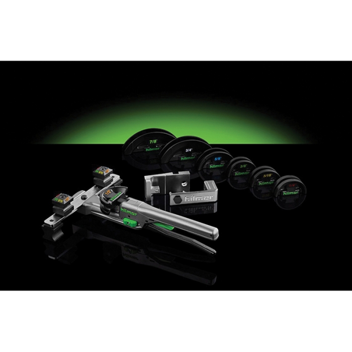Small in size. Big on advantages. The hilmor compact bender will help you get the job done right - from start to finish. Small-space capabilities, one-handed operation and precise bends - you get it all. A universal crossbar and color-coded mandrels provide simple setup and easy size identification. An advanced mandrel design and quick-release mechanism allow for an easy tube release. You can count on precise bends of 1/4, 5/16, 3/8, 1/2, 5/8, 3/4 and 7/8 in tubing up to 90 deg.