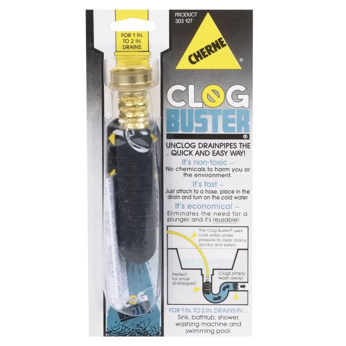 - Insert clog buster as far as possible into drain and slowly turn on the cold water - clog should dislodge almost immediately