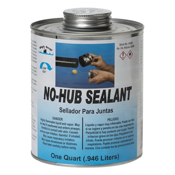 Black Swan's no-hub sealant is an amber colored, smooth flowing, semi-viscous liquid for use as a coating on black pipe to improve leak-free sealing of no-hub couplings. The high performance polymer resin compound is elastic and resists vibration and temperature change. It is a fast drying sealant that cures by solvent evaporation resulting in an elastic membrane that adheres to both pipe and coupling gasket, providing a flexible adherent membrane coating. Gaskets on nonporous surfaces may be taken apart at anytime without injury to sealed surface.