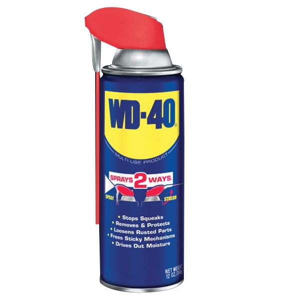 WD-40 multi-use product protects metal from rust and corrosion, penetrates stuck parts, displaces moisture and lubricates almost anything. Its permanently attached smart straw sprays 2 ways.