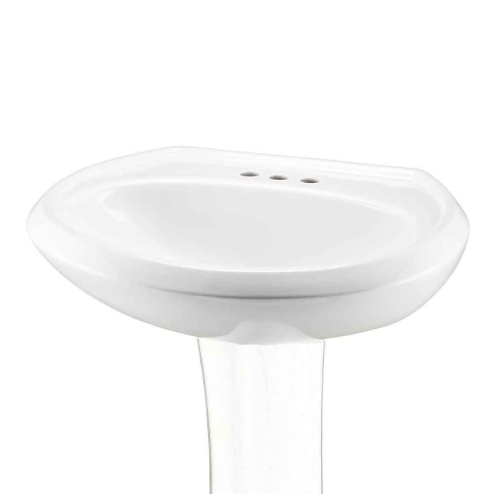 Vitreous China 3-Hole Single-Bowl Round Pedestal Bathroom Sink Basin, 25-1/2 in L x 20-1/2 in W x 8-3/4 in H, Center Drain, White