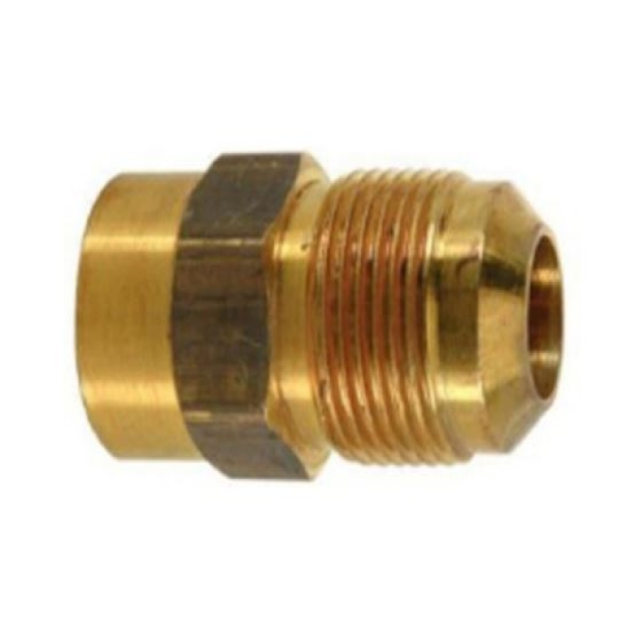 BrassCraft 5/8 in male flare (15/16-16 thread) x 1/2 in FIP gas fitting adapts Safety+PLUS excess flow valve connector to male flare gas ball valves. Manufactured from solid bar stock for a seamless design. The fitting features a flare end and a male end. Fitting is for use with larger demand appliances such as a 5-burner gas range or furnace.