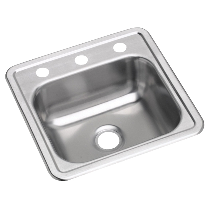 23 ga 300 Stainless Steel 3-Hole Single-Bowl Square Drop-In Bar Sink, 15 in L x 15 in W x 5-3/16 in H, Center Drain, Satin