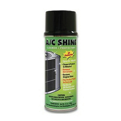 A/C Shine is specially formulated to clean and protect the painted metal surfaces of outdoor A/C condensing units. It sprays on and wipes off quickly and easily without water.