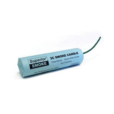The Superior 3C smoke candle generates 40000 cu-ft smoke while burning from 2 - 3 min. Superior classic smoke candles quickly and efficiently produce dense white smoke. The 3C smoke candle is used for a variety of professional applications across multiple industries. Disposable and simple to use, no external power or heat source is required.