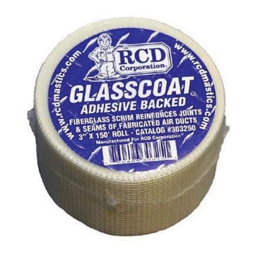 RCD's glasscoat is an inorganic woven fiberglass mesh, coated on one side with pressure sensitive adhesive. Glasscoat reinforces adhesives, coatings, mastics and sealants used in the fabrication and installation of air ducts and thermal insulation. Glasscoat is known by several descriptions such as: fiberglass scrim, fiberglass tape and fiberglass cloth.