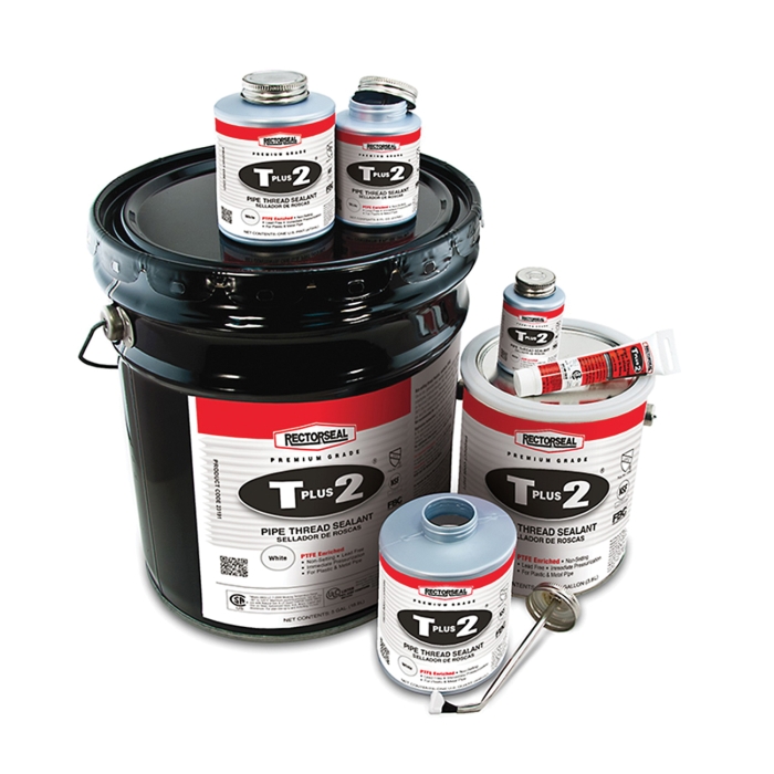RectorSeal T plus 2 is a non hardening thread sealant containing PTFE plus synthetic fibers. These fibers are dispersed in a resinous base combined with inert mineral fillers to provide maximum sealing performance. Its low coefficient of friction allows tighter joint makeup with lower torque. It also breaks out easily without galling, seizing or damaging threads. It is excellent for service where immediate pressurization is necessary. RectorSeal T plus 2 is non toxic in accordance with NSF standard 61. In addition, it is approved and listed with the Canadian standards association (CSA).