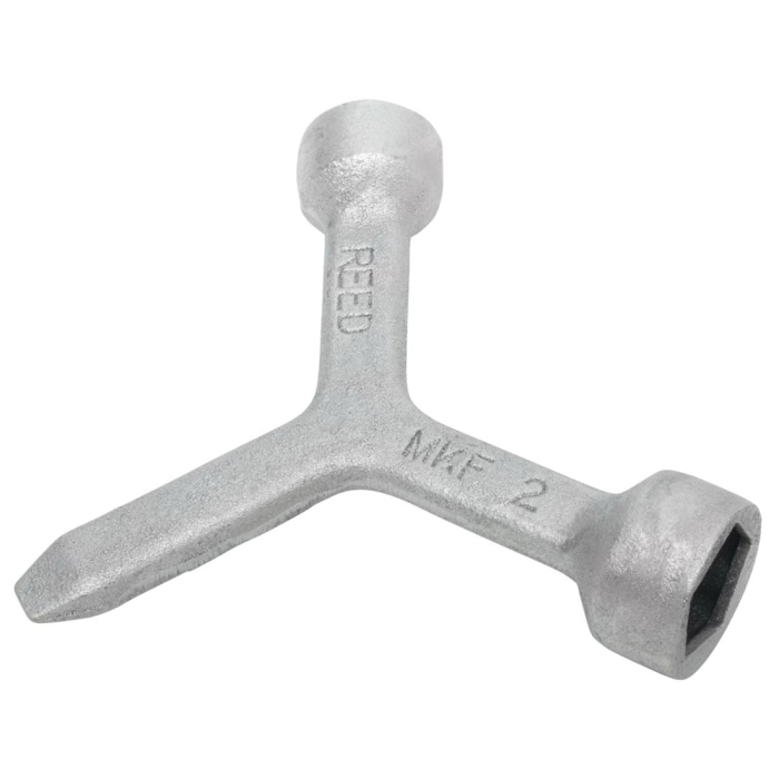 Reed meter box and curb box lid keys open many styles of meter pit lids and curb box lids. Reed pentagon meter key capacities include standard waterworks pentagon boltsand plugs, as well as the large pentagon bolts made by both Mueller and Ford. Careful design and production ensure the Reed pentagon and skeleton keys fit many brands of lids and bolts. Reed meter box and curb box lid keys all have a turn and lift feature, allowing tool users to open a lid, lock onto it and lift the lid off with a single motion. All Reed meter box and curb box lid keys are made of strong, plated ductile iron to inhibit rust.