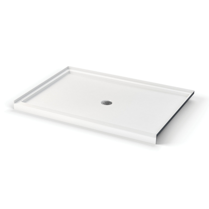 Acrylic Alcove Shower Base, 42 in L, 60 in W, 4-1/4 in H, AcrylX and White, Center