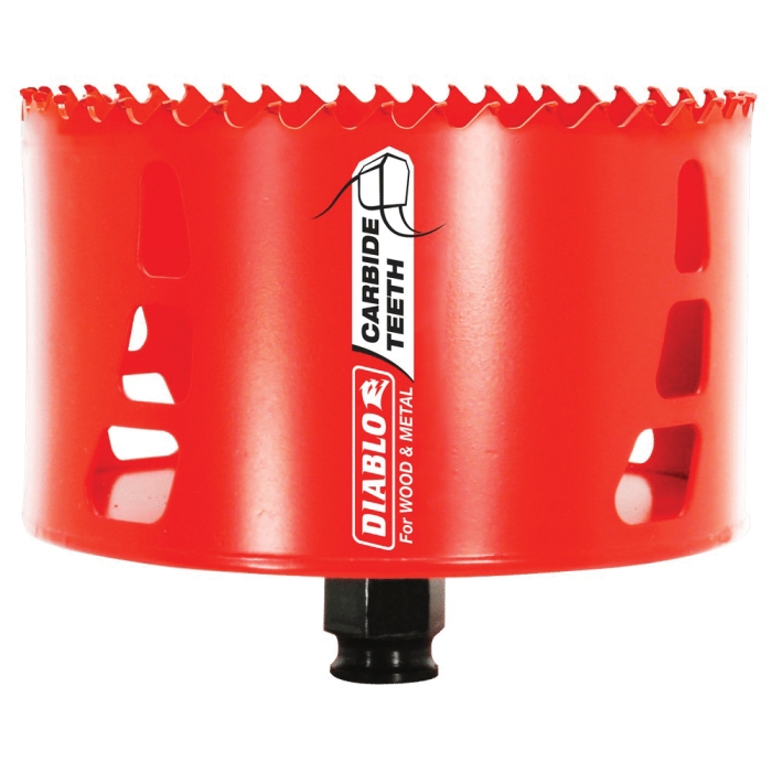 Diablo introduces the first carbide tipped hole saws on the market to cut both wood and metal (wood, nail-embedded wood, plastic, aluminum, metal, cast iron, stainless steel and metal). Delivering 50-times longer cutting life than bi-metal, these new carbide tipped hole saws offer faster cutting performance and increased productivity.