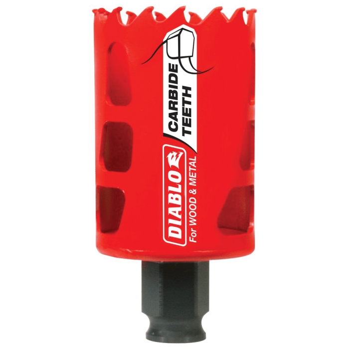 Diablo introduces the first carbide tipped hole saws on the market to cut both wood and metal (wood, nail-embedded wood, plastic, aluminum, metal, cast iron, stainless steel and metal). Delivering 50-times longer cutting life than bi-metal, these new carbide tipped hole saws offer faster cutting performance and increased productivity.