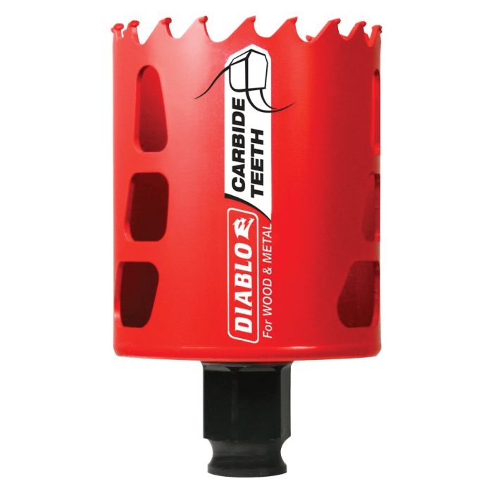 Diablo introduces the first carbide tipped hole saws on the market to cut both wood and metal (wood, nail-embedded wood, plastic, aluminum, metal, cast iron, stainless steel and metal). Delivering 50-times longer cutting life than bi-metal, these new carbide tipped hole saws offer faster cutting performance and increased productivity.