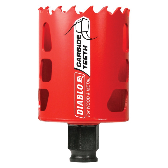 Diablo introduces the first carbide tipped hole saws on the market to cut both wood and metal (wood, nail-embedded wood, plastic, aluminum, metal, cast iron, stainless steel and metal). Delivering 50-times longer cutting life than bi-metal, these new carbide tipped hole saws offer faster cutting performance and increased productivity.