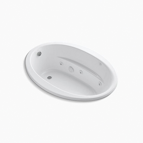 Surround yourself with the comfortable contours and hydro massage features of the Sunward oval bath. This two-person bath's built-in back support and armrests encourage you to fully sink in, while adjustable whirlpool jets relax away the day's tension. Kohler ExoCrylic is the next generation of bathroom acrylics, featuring a lighter weight for easier installation and 90% fewer VOCs produced during manufacturing.
