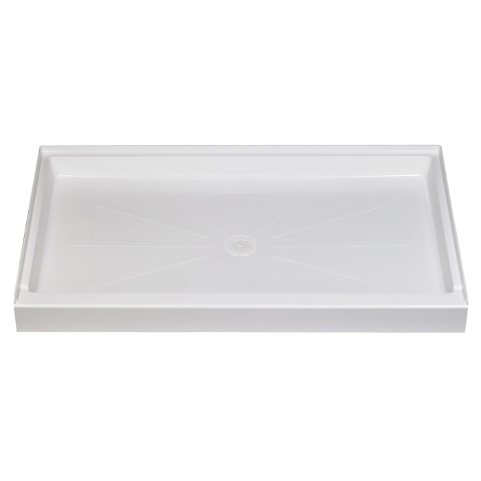 Durabase Fiberglass 1-Piece 1-Threshold Shower Base, 60 in L, 36 in W, 4-1/2 in H, Semi-Gloss and White, Center