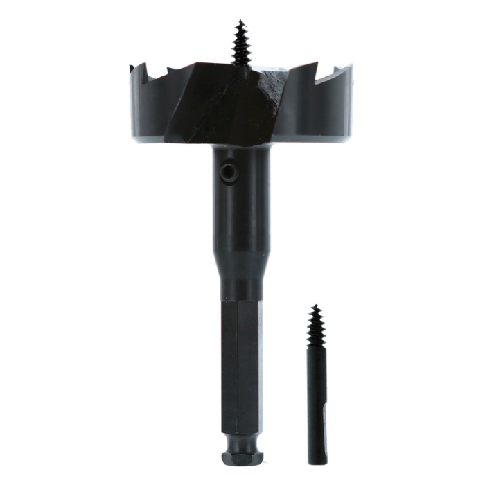 - Feed screw with pull-out stop design prevents the feed screw from slipping out when the bit is removed from the material