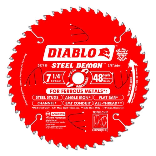 Steel Demon Circular Saw Blade, 7-1/4 in Blade Dia, 0.063 in THK, 5800 rpm Blade Speed, 2 in