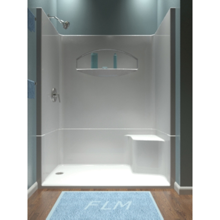 Gel-Coated Fiberglass 4-Piece Shower Stall, 78 in L, 60 in W, 34 in H, White, Left Seat Right Drain