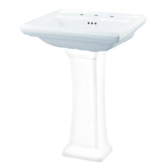 Vitreous China 1 Rectangular Pedestal Bathroom Sink Basin, 34-1/2 in L, 24 in W, 19-7/8 in H, Center Drain, White