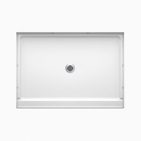 Guard Solid Vikrell 3-Wall Alcove Shower Base, 48 in L, 34 in W, 2-3/4 in H, High-Gloss and White, Center