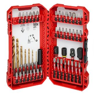 Our MILWAUKEE® SHOCKWAVE Impact Duty™ 50PC Drill & Drive Set is engineered to be the Most Durable, Best Fitting driver bits on the market. The WEAR GUARD TIP™ delivers increased wear resistance which protects the impact bit's fit over the life of the bit. The SHOCK ZONE™ is optimized for each tip type and length of driver bit in the set to absorb peak torque and prevent breaking. The driver bits are made from CUSTOM ALLOY76™ steel and a proprietary heat treatment process to extend bit life, providing up to 50X life versus other impact driver bits on the market. The Milwaukee® SHOCKWAVE Impact Duty™ driver bits are built to provide users with extreme durability for the most demanding applications. The set is organized in a customizable accessory case designed for use in PACKOUT™.