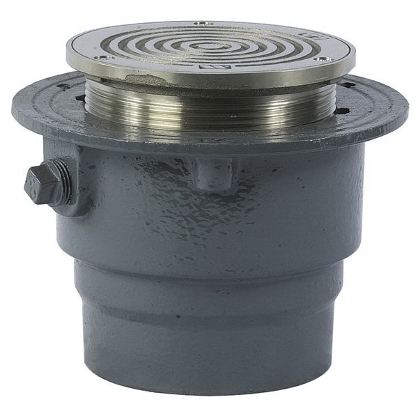 CO-200-R Epoxy Coated Cast Iron Adjustable Floor Cleanout with 5 in Nickel Bronze Strainer