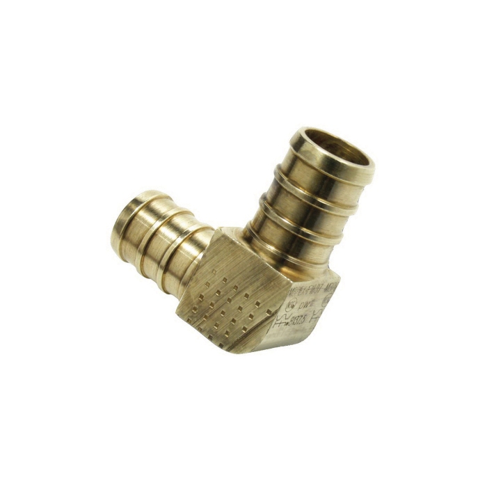 This lead-free Crimpring elbow is used to make a 90 deg transition between potable or radiant heating PEX tubing. This 1/2 in crimp x 3/4 in crimp elbow is made of lead-free brass and must be joined to the PEX tubing using a copper crimp ring to form a fast, reliable and permanent seal. It is recommended to use an electric crimp tool to make the crimp connection.