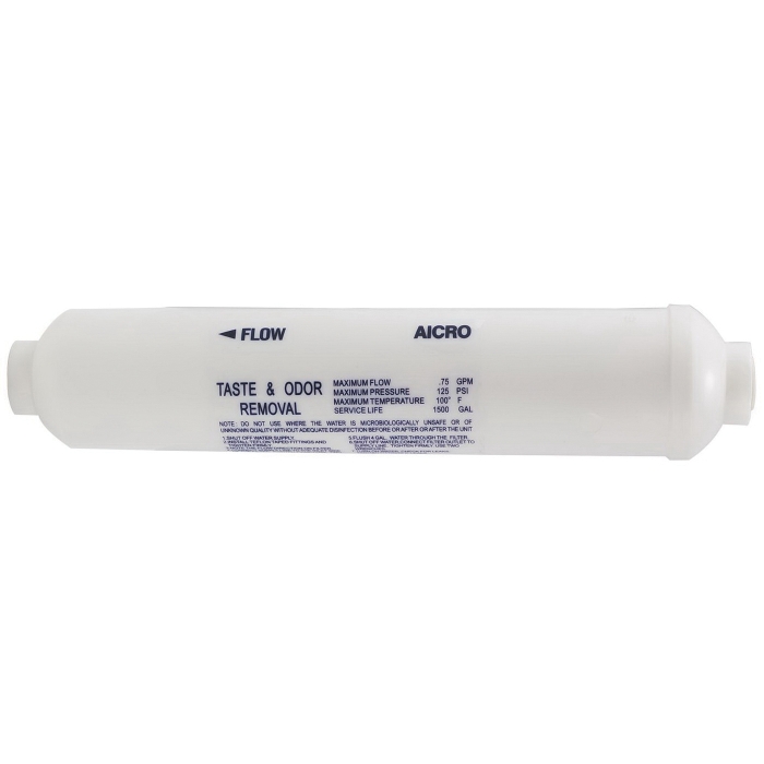 This 10 in granular activated carbon (GAC) inline water filter is perfect for a final polishing filter that is used as the water is leaving the storage tank on its way up to the faucet applications on reverse osmosis systems or as a stand alone ice maker filter. The filter has a 1/4 in FNPT connection. This filter should be replaced approximately every 6-months for best results.