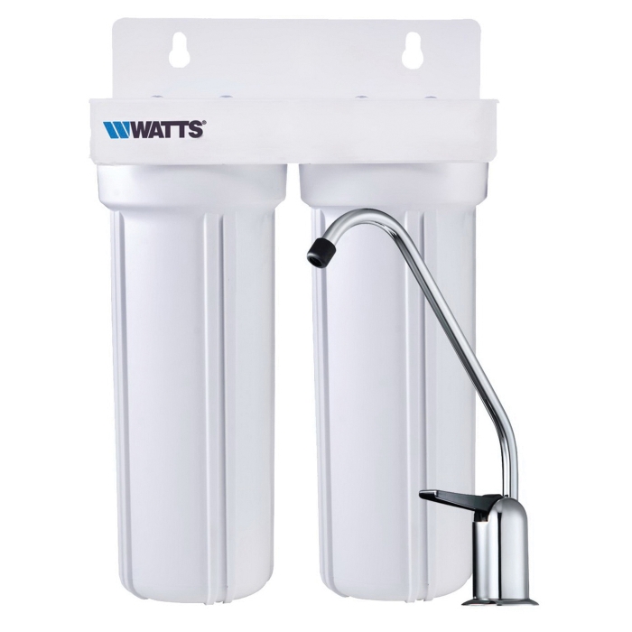 This 2-stage LCV under the counter water filtration system is great for homes with limited under the sink or under the counter space. A combination of 1, 5 micron sediment filter and 1, 1 micron carbon block lead reduction filter works great for removal of sediment, chlorine taste and odors, lead and cysts contaminants from the drinking water. The system is built on a heavy-duty 10 ga bracket pre-drilled with two mounting points giving the ability to either hang the unit or leave it standing on the filter bowl. A chrome faucet dispenser and tubing along with the installation kit is included.