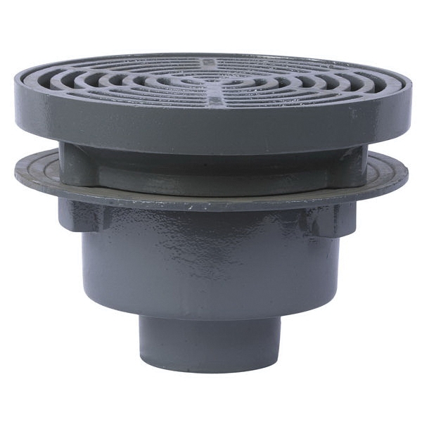 This epoxy-coated, cast iron floor drain is ideal for interior area applications. It features an 12-1/2 in round fixed top with heel-proof ductile iron grate, weepholes, anchor flange and 4 in push on connection. This item carries an extra heavy duty load rating and can be purchased as BAA compliant. Nickel bronze top, sediment bucket, vandal proof, trap primer tapping, backwater valve, galvanized body, secondary strainer, dome grate and various funnel options are also available.