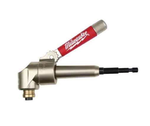Milwaukee's Right Angle Attachment allows contractors to drive screws and drill holes in tight, difficult work areas. This attachment is ideal for cordless drills and uses standard 1/4" hex accessories. It has a durable all-metal housing and steel gears with ball bearing construction which allows this adapter to handle up to 235 in-lbs of torque. The compact design measures only 2 inches wide allowing it to fit in tight spaces where work is difficult to perform. The convenient quick change chuck accepts standard 1/4" hex drive accessories.