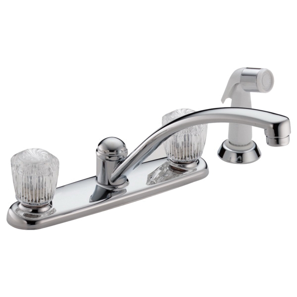 Classic Chrome Brass 2-Handle Basic Swivel Kitchen Faucet with Spray, 1.8 gpm at 60 psi, 1/2 in IPS NPSM, 8 in Centers