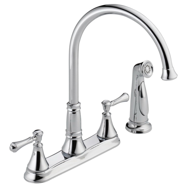 Cassidy Brass 2-Handle High-Arc Swivel Kitchen Faucet with Spray, Chrome, 8 in Centers