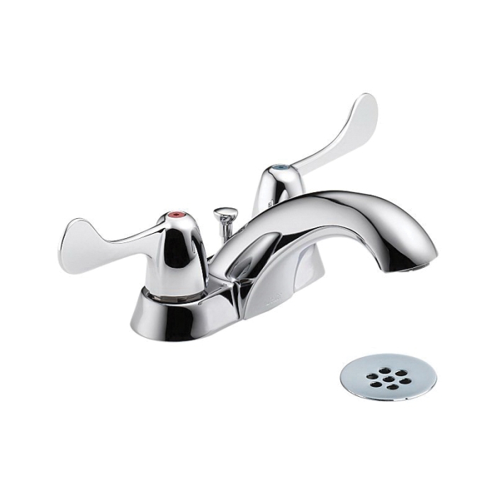 Basic HDF Brass 2-Handle Fixed Centerset Lavatory Faucet, Chrome, 1.2 gpm at 60 psi, 4 in Centers
