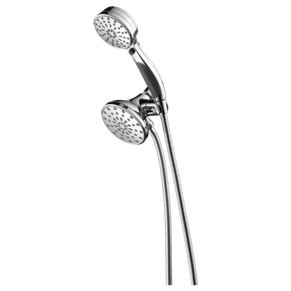 With 3-spray selection buttons and a pause feature, ActivTouch hand showers allow you to choose from up to nine different spray settings with a simple,1-handed activation, delivering a new level of innovation for an enhanced handheld showering experience. While other products may gather unsightly mineral build-up over time, Delta soft rubber Touch-Clean spray holes allow any mineral residue to simply be wiped away for an instantly refreshed look - with no need for soaking or the aid of chemical cleaners. The pause setting gives you ample space for shaving, lathering and other shower tasks, then easily restarts the water with the temperature where you left off. This spray setting helps you conserve water, so you can worry less about depleting your supply of hot water - and you help the environment too. Delta WaterSense labeled faucets, showers and toilets use at least 20% less water than the industry standard - saving you money without compromising performance. Create a luxurious shower experience with a Delta hand shower/shower head combination. Whether you're remodeling your space or upgrading your existing setup, our hand shower/shower head combos will give you more flexibility and coverage in a variety of stunning styles.
