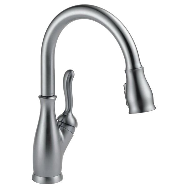 Leland 1-Handle High-Arc Gooseneck Swivel Pull-Down Kitchen Faucet, Arctic Stainless, 1.5 gpm, 8 in Centers, Lead-Free