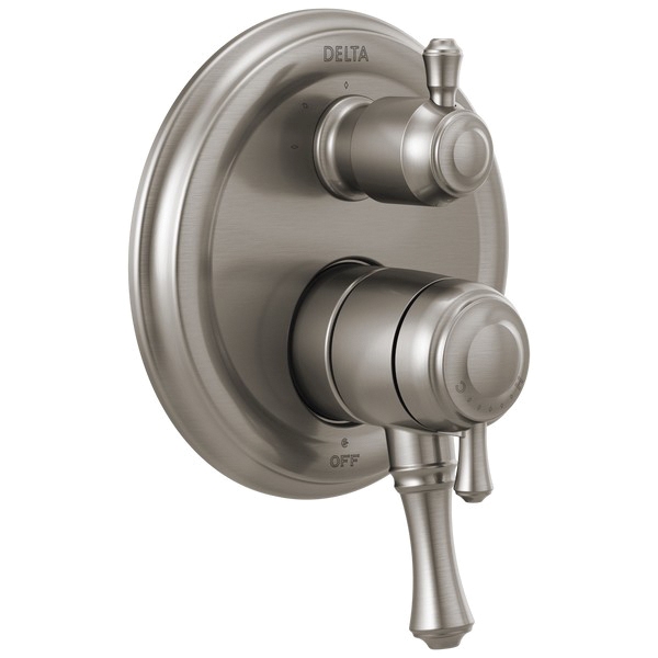 The Delta MultiChoice integrated shower diverter consolidates custom shower design with its consumer-preferred streamlined style eliminating the need for an additional diverter valve. The traditional round style lends a timeless feel to your space. With three popular style choices to coordinate with any bathroom decor, it provides you the flexibility to select the type of custom shower functionality you prefer. With the MultiChoice universal system, you have the freedom to upgrade style and functionality later and because there is no need to alter plumbing behind the wall, you save time, effort and money on future renovation updates.